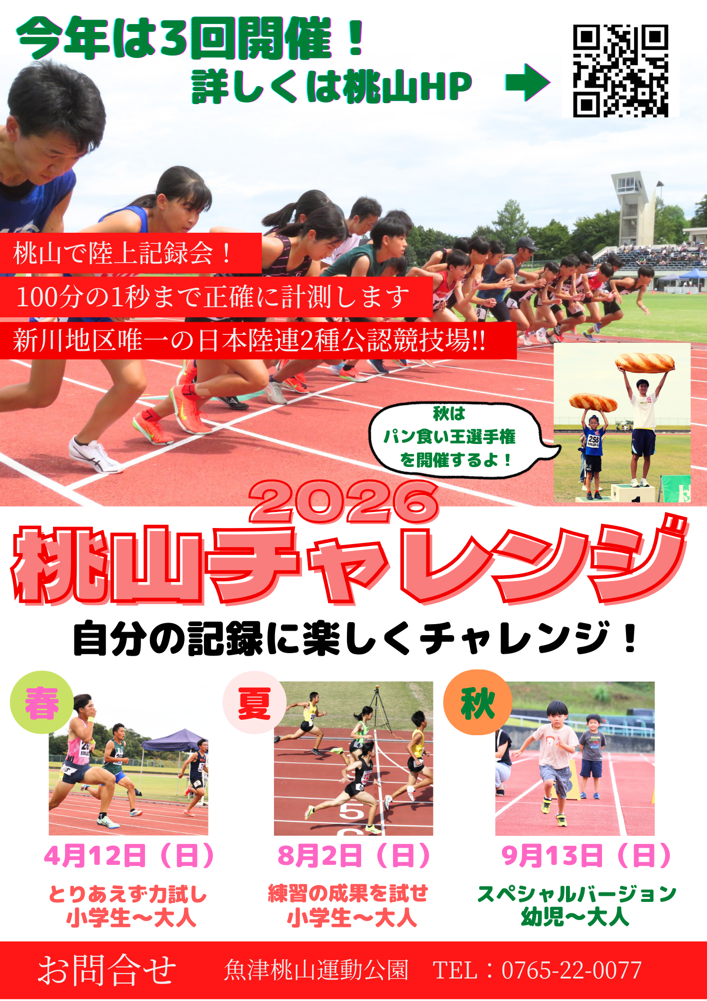 大好評の陸上記録会【桃山チャレンジ】を今年は春・夏・秋と3回開催します!